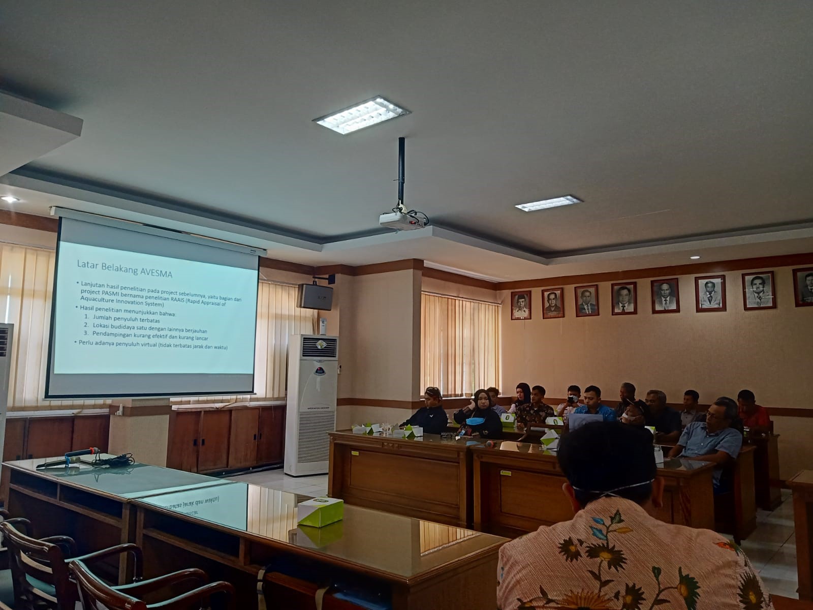 Tita Elfitasari, SPi., MSc., PhD as a lecturer in the Aquaculture Studies program and project chair, carried out the first socialization about the AVESMA application in the Hall on the 3rd floor of the Central Java Province Fisheries and Marine Service Building. On this occasion, apart from representatives from the City and Regency Marine Fisheries Services in Central Java, small-scale fish farmers and extension services were also present. During the socialization, several fish farmers seemed enthusiastic about asking about the AVESMA application. Several students who were conducting research on the AVESMA topic also briefly explained the results of their research on various fish farmer groups in Central Java which received positive responses from respondents.