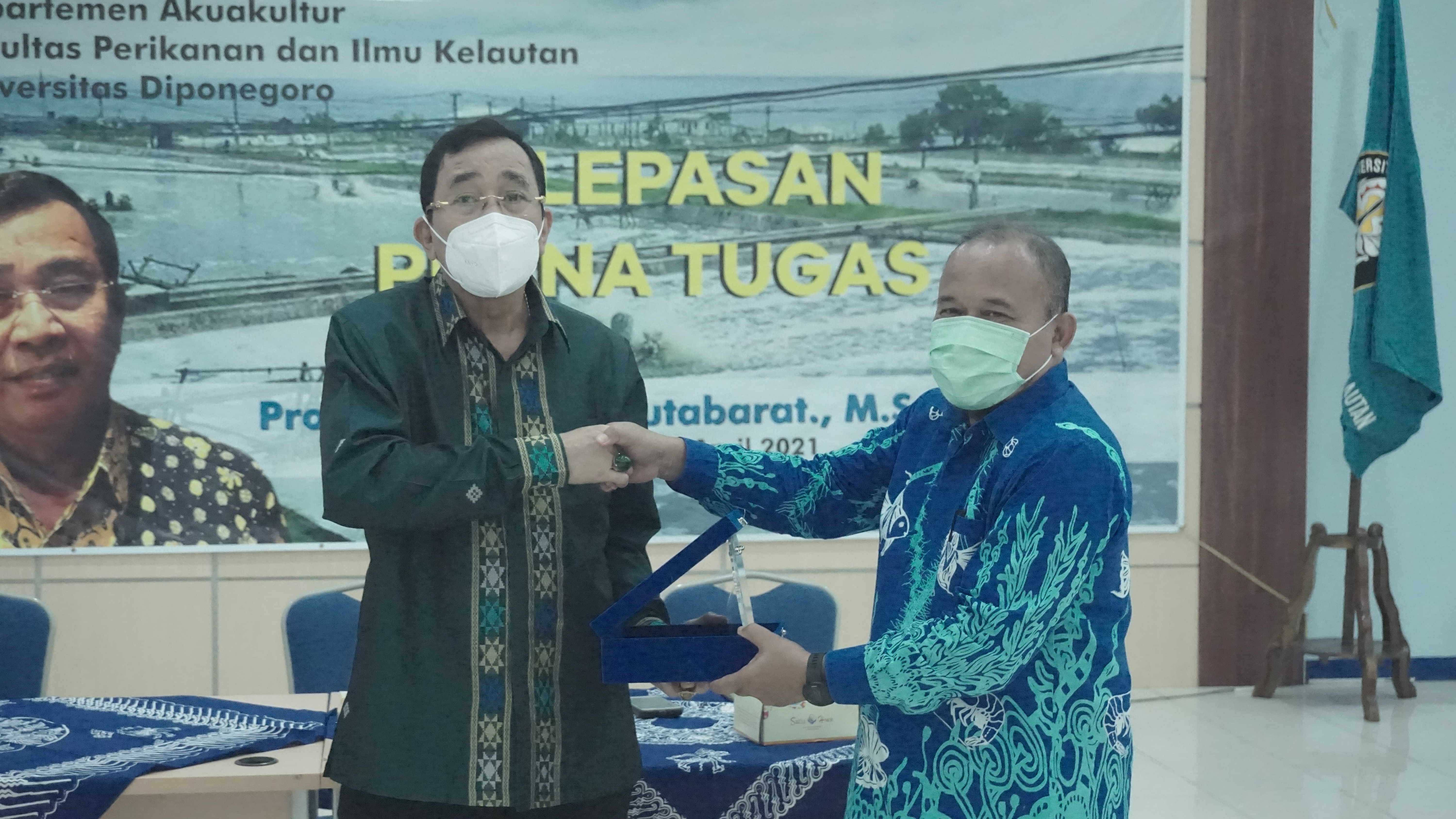 FPIK, SEMARANG – Retirement may be an ending, a closing, but it is also a new beginning. Begitulah salah satu quote yang tepat bagi salah satu professor di bidang pakan di Departemen Akuakultur, FPIK, Universitas Diponegoro. Prof. Ir. Johannes Hutabarat, M.Sc, Ph.D atau biasa kita sapa Prof. Jo, telah usai masa aktifnya di Departemen Akuakultur, FPIK – UNDIP. Acara purna tugas Prof. Jo dilaksanakan secara sederhana di Auditorium FPIK pada hari Senin, tanggal 5 April 2021 dan dihadiri oleh Dekan dan Wakil Dekan FPIK, beberapa staf Departemen Akuakultur serta perwakilan mahasiswa Departemen Akuakultur. Acara ini diselenggarakan dengan tetap mengikuti protokol COVID-19. “Memang tidaklah mudah menyelenggarakan acara di saat pandemi seperti ini, tetapi Prof. Jo adalah guru kita, dan ini saatnya kita memberikan penghargaan bagi beliau”, kata Dr. Vivi Endar Herawati, S.Pi., M.Si selaku ketua panitia acara purna tugas Prof. Jo.