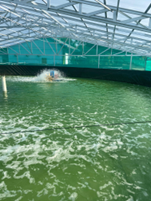 Kultur massal Spirulina platensis dilakukan menggunakan kolam bundar berdiameter 16 meter, yang dirancang khusus untuk mendukung produksi biomassa mikroalga dalam skala besar. Sistem kultur ini diharapkan mampu menghasilkan Spirulina dengan produktivitas tinggi dan kualitas yang stabil, sehingga berpotensi dikembangkan sebagai bahan baku pakan alami maupun pakan fungsional dalam kegiatan budidaya perikanan.